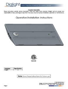 UL – Reliant LED High Bay Occupancy Sensor – Installation Manual